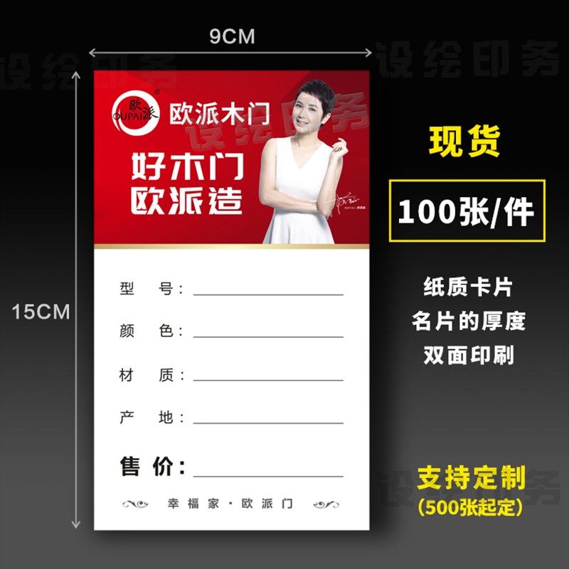 欧派木门标价签门窗价格签家居门业价格牌展示定做商品价签贴订制