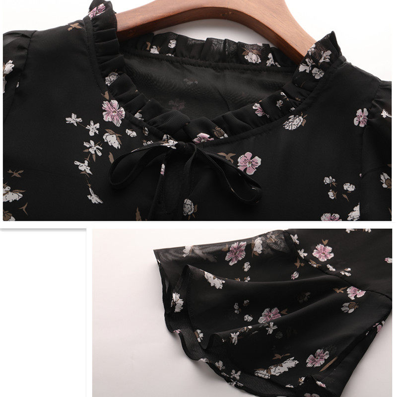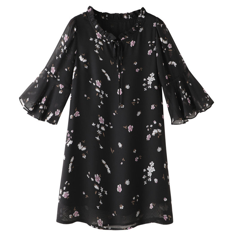 加肥女装胖妈妈遮肚碎花雪纺衫
