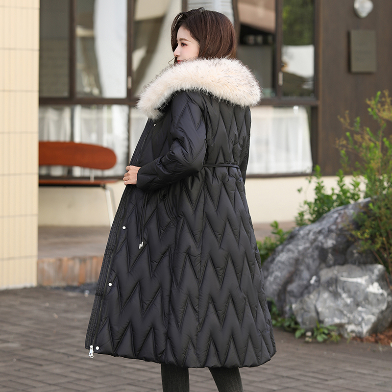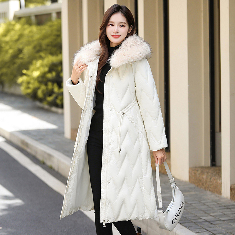 大毛领羽绒棉服女冬2025新款显瘦时尚洋气中长款过膝收腰棉袄外套