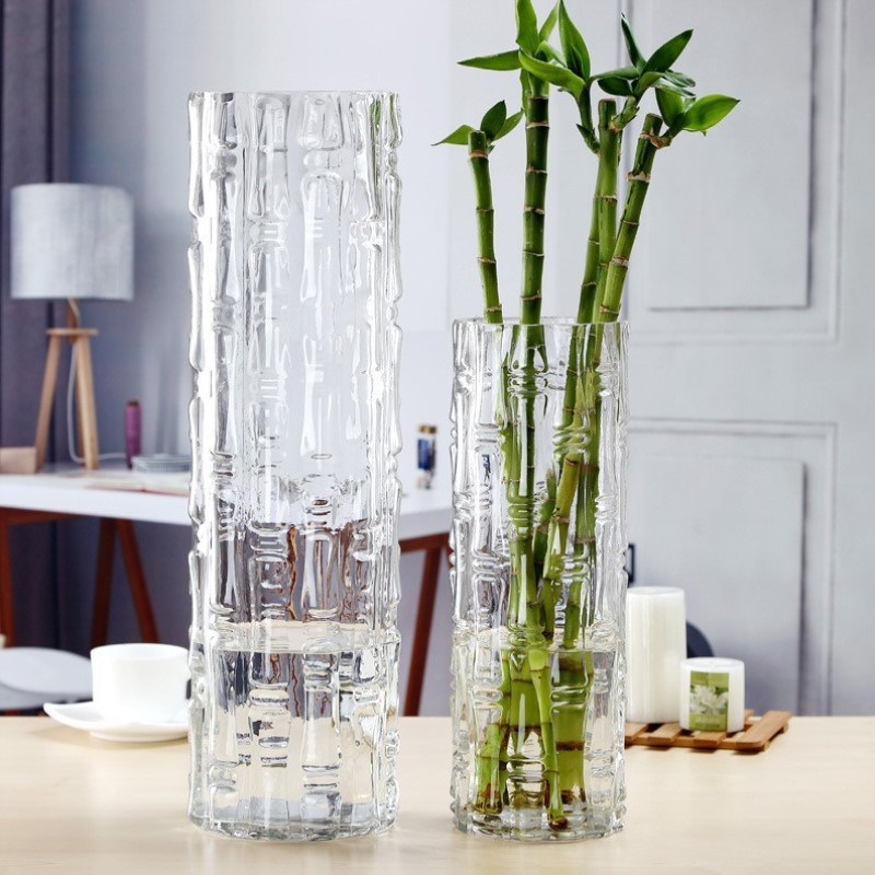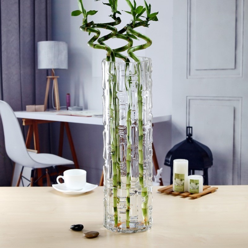大插花高档富贵竹奢风转运竹水晶玻璃花瓶落地感轻轻奢高级摆件特