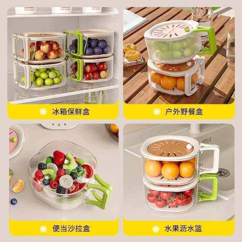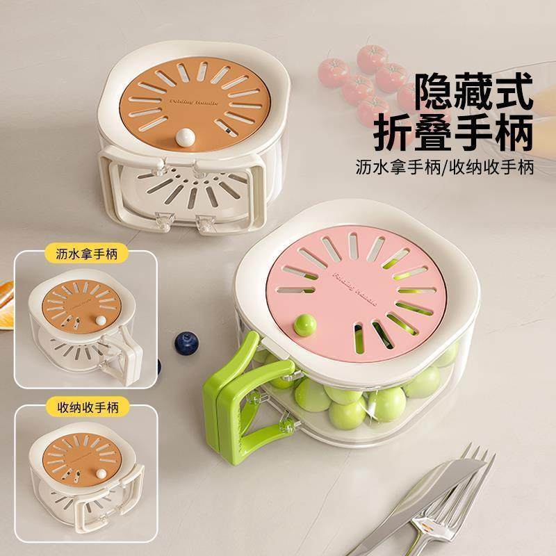 日本洗水果沥水篮水果盘轻奢高档家用多功能可折叠篮冰箱保鲜盒