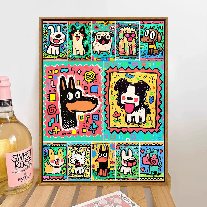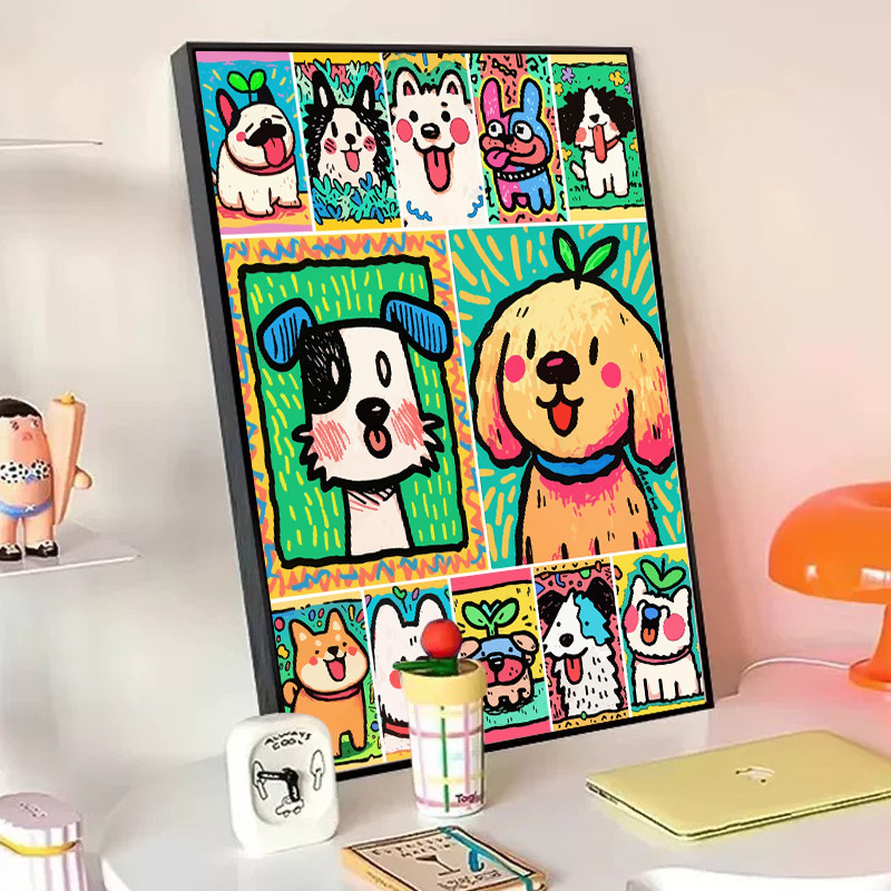 2025新款可爱狗狗diy数字油画填色油彩画画多巴胺治愈卡通装饰画