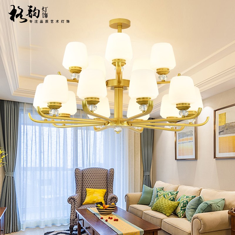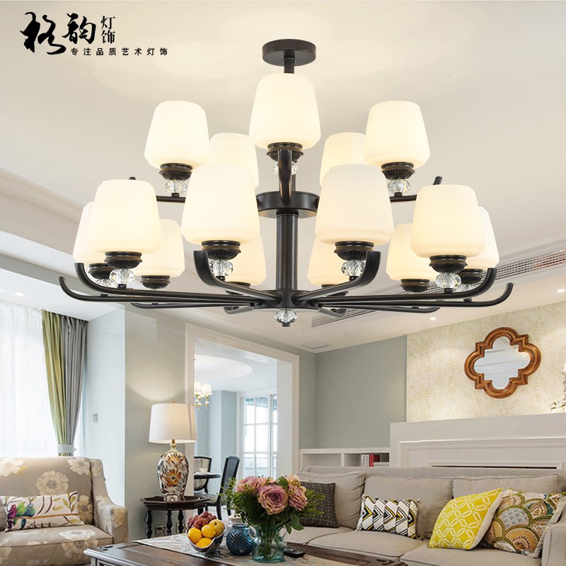 客厅吊灯美式简约客厅卧室灯酒店别墅双层水晶装饰个性大气灯具