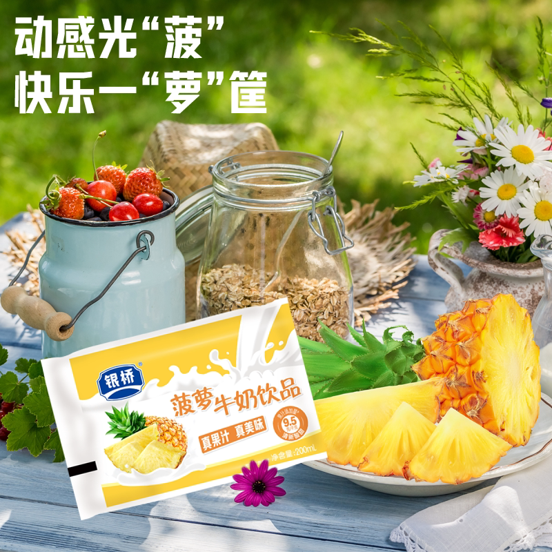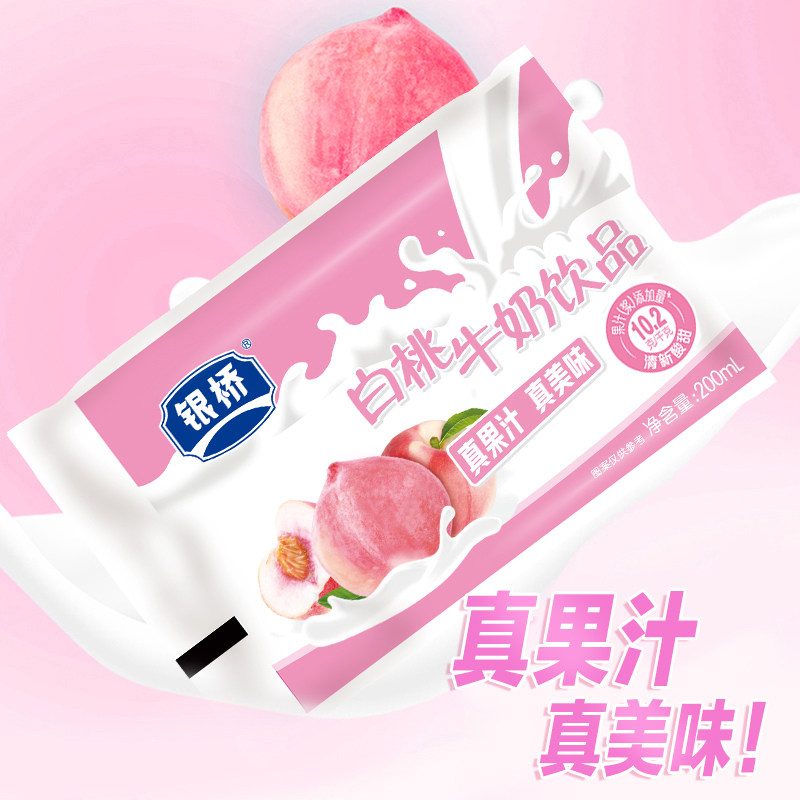 银桥酸奶葡萄味牛奶饮品草莓香橙白桃蓝莓菠萝牛奶饮品整箱袋装