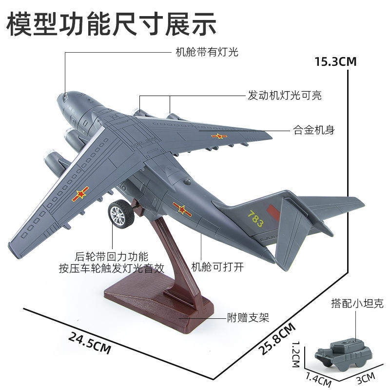 新款 仿真1:0 运20战斗机军事合金飞机模型灯光音效收藏摆件