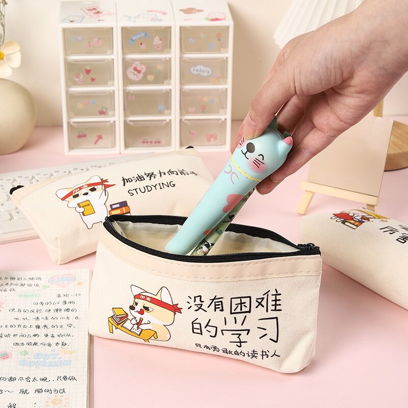 定制笔袋学生元旦礼品卡通励志帆布ins风男女生创意文具袋印logo