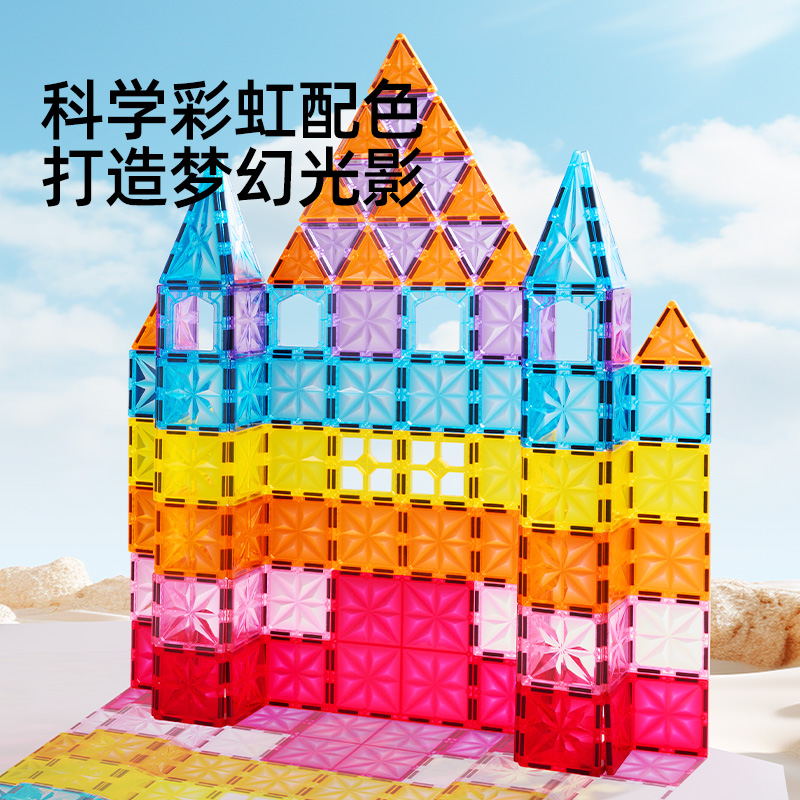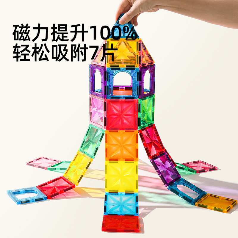 美乐童年儿童彩窗磁力片积木磁吸贴片方块3到6岁益智玩具圣诞礼物