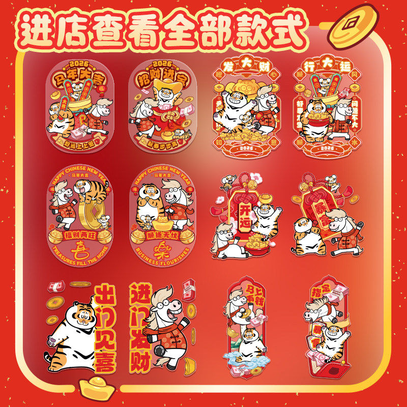 玻璃厨房门贴纸胖虎马年2026新年装饰静电贴过年场景布置春节窗花