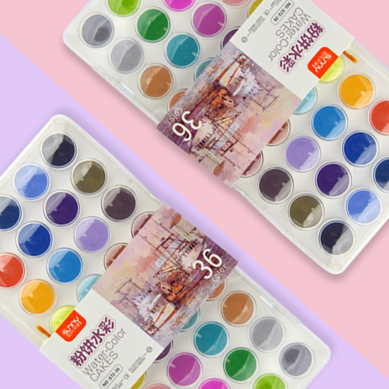 阳光天使固体水彩颜料28色36色套装初学者手绘画笔写生便携画笔水粉套装