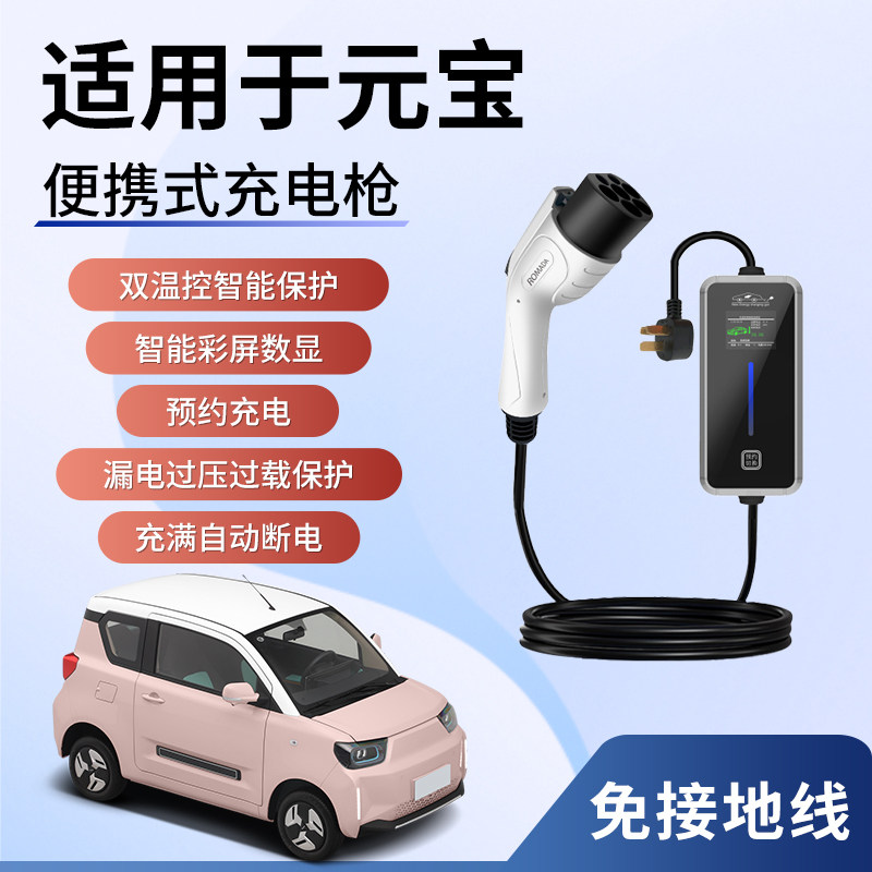 适用于北汽元宝新能源充电枪器桩电动汽车便携式家用随车充免接地