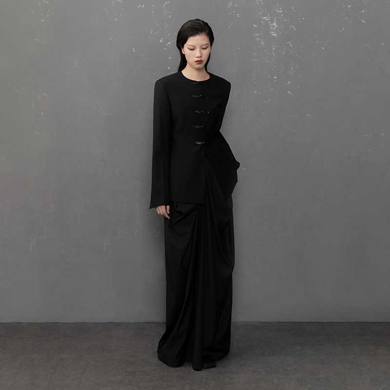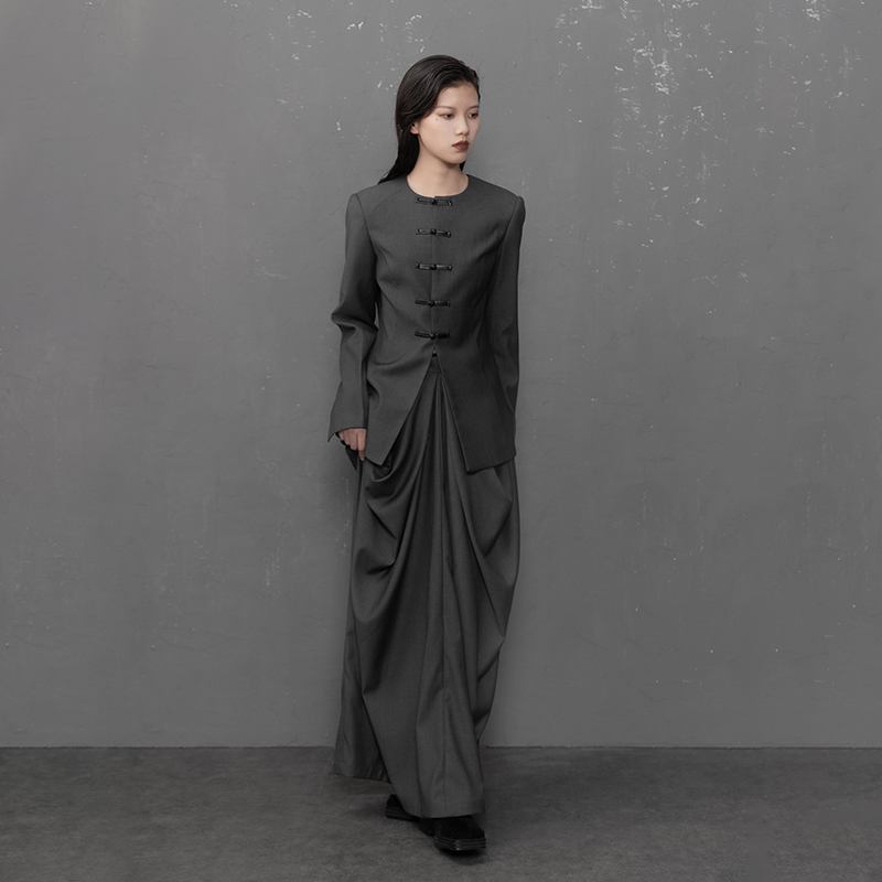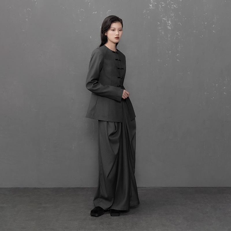 VAPOURBLUE新中式盘扣中山西装女春季复古休闲无领修身西服外套