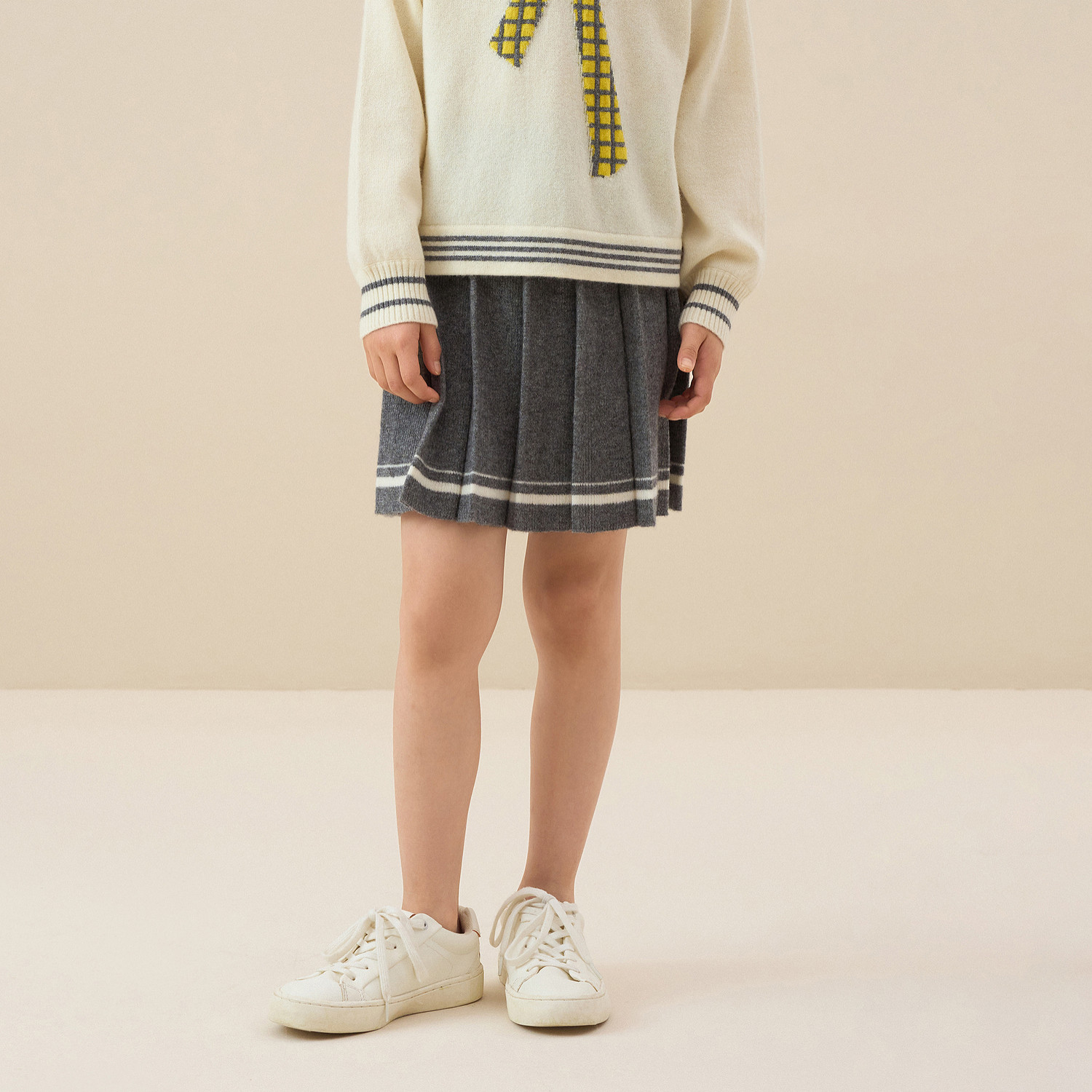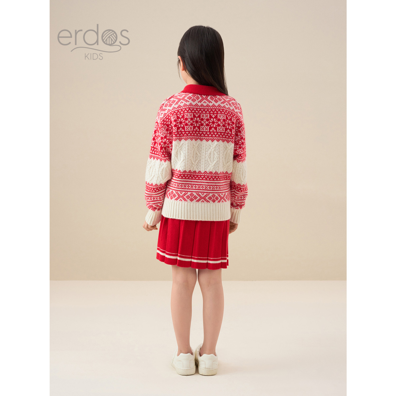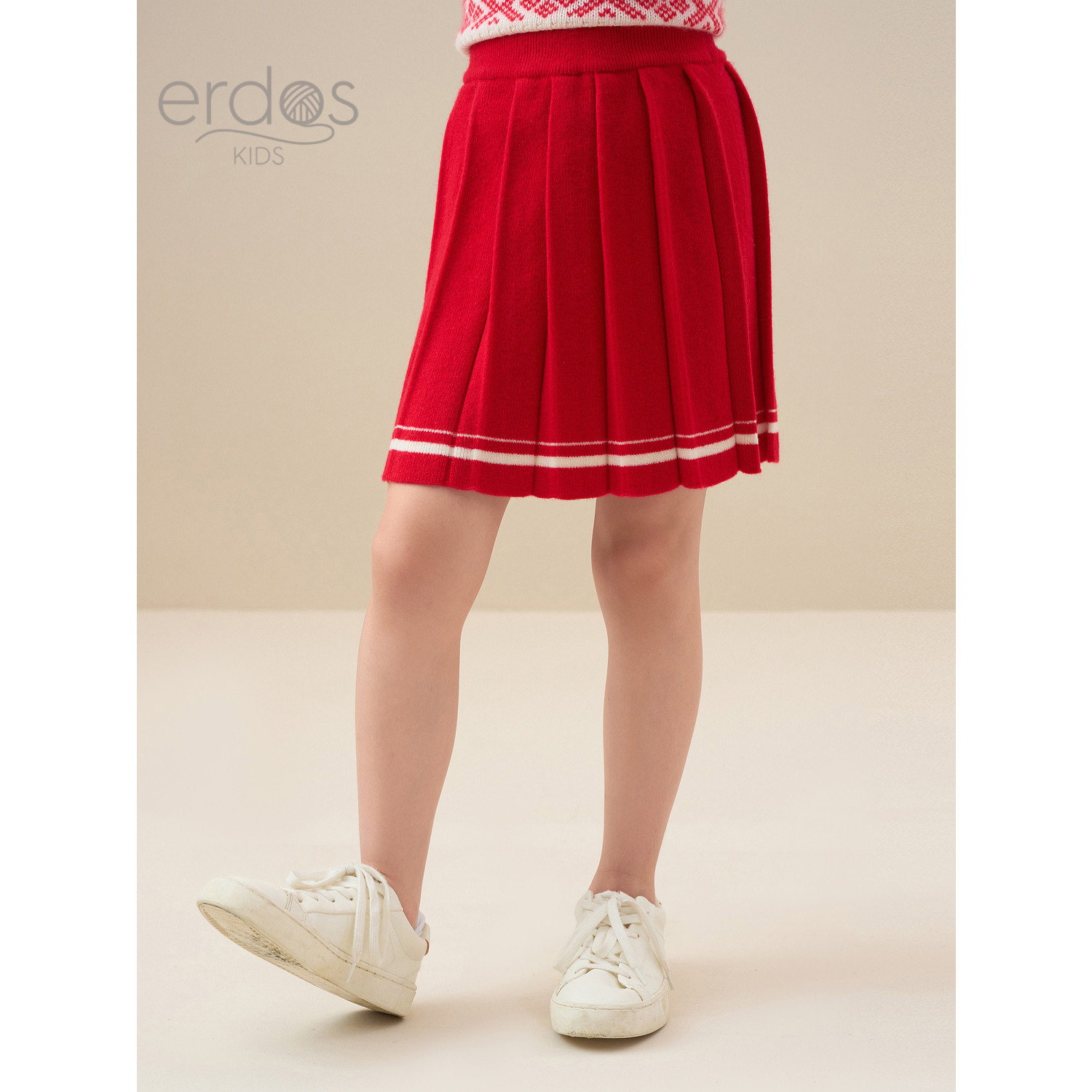 鄂尔多斯儿童女童半裙秋冬新品红色节日短裙半身裙学院风针织