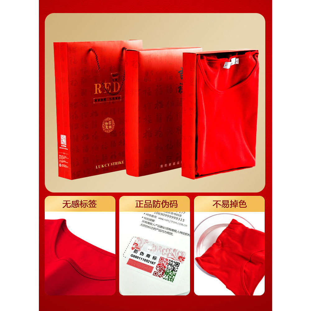本命年保暖内衣套装女新疆纯棉加绒加厚男士全棉马年红色秋衣秋裤