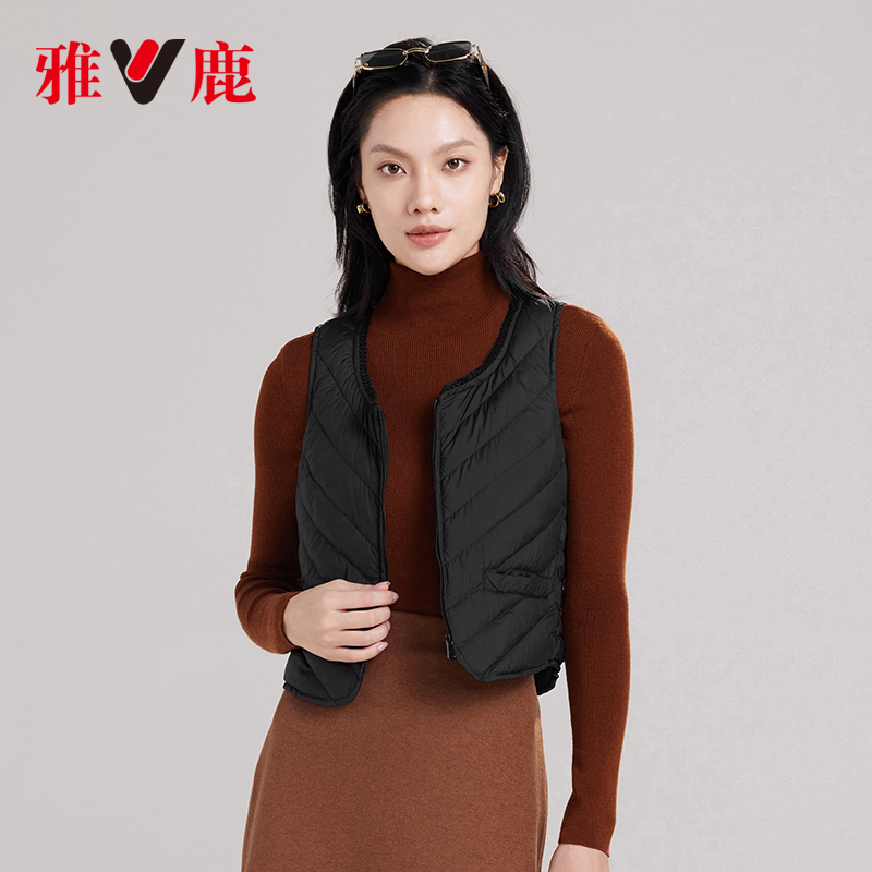雅鹿短款圆领羽绒马甲内胆女大衣内搭保暖贴身背心马夹2025冬季新