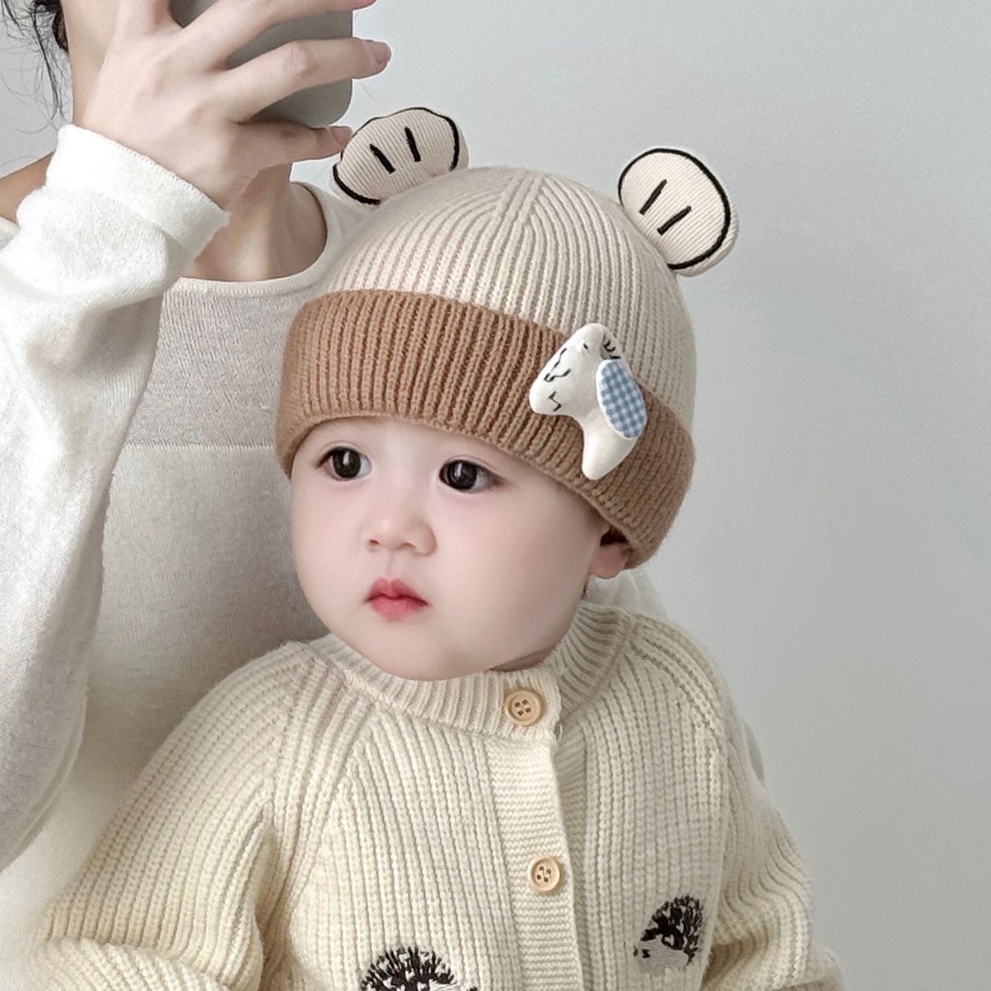 婴儿帽子秋冬季毛线帽男女宝宝可爱超萌针织保暖加厚套头帽婴幼儿