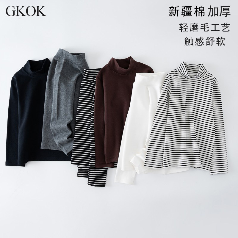 新疆棉加厚中领上衣儿童秋冬打底衫男女童半高领保暖宝宝百搭长袖