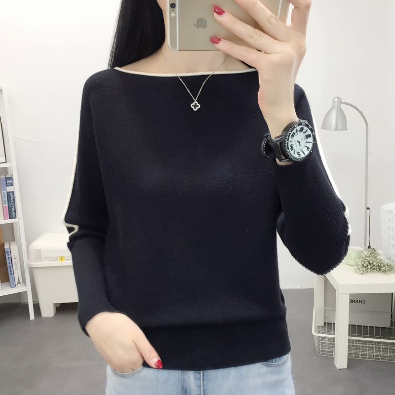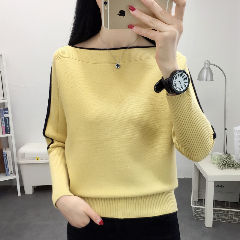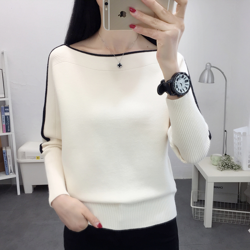 一字领蝙蝠衫宽松外穿女士毛衣短款长袖针织打底衫洋气百搭上衣潮