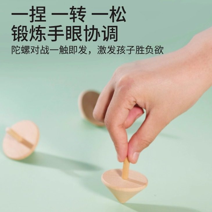 木陀螺儿童手转拧小陀螺幼儿园桌面游戏传统怀旧木制旋转DIY玩具