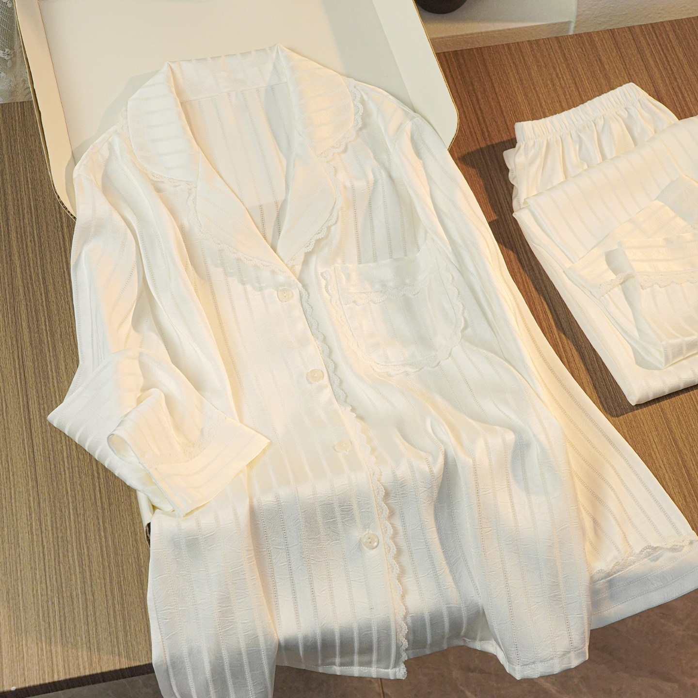 猫人冰丝睡衣女春秋款带胸垫长袖薄款2026高级感真丝绸家居服礼盒
