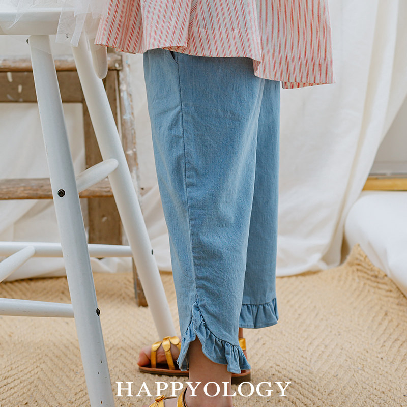 Happyology英国女童七分裤春夏款裤装儿童木耳边防蚊裤宝宝休闲裤