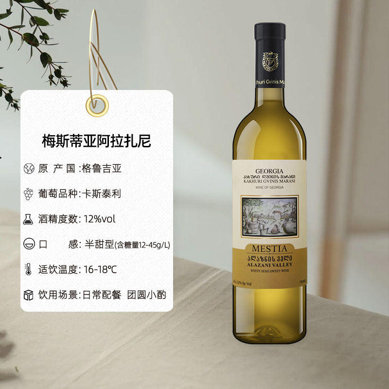 Mestia格鲁吉亚原瓶进口红酒 梅斯蒂亚微醺晚安半甜白葡萄酒整箱