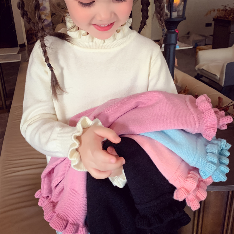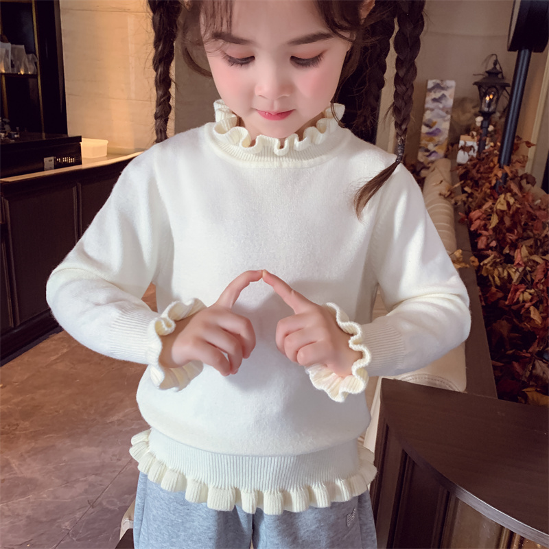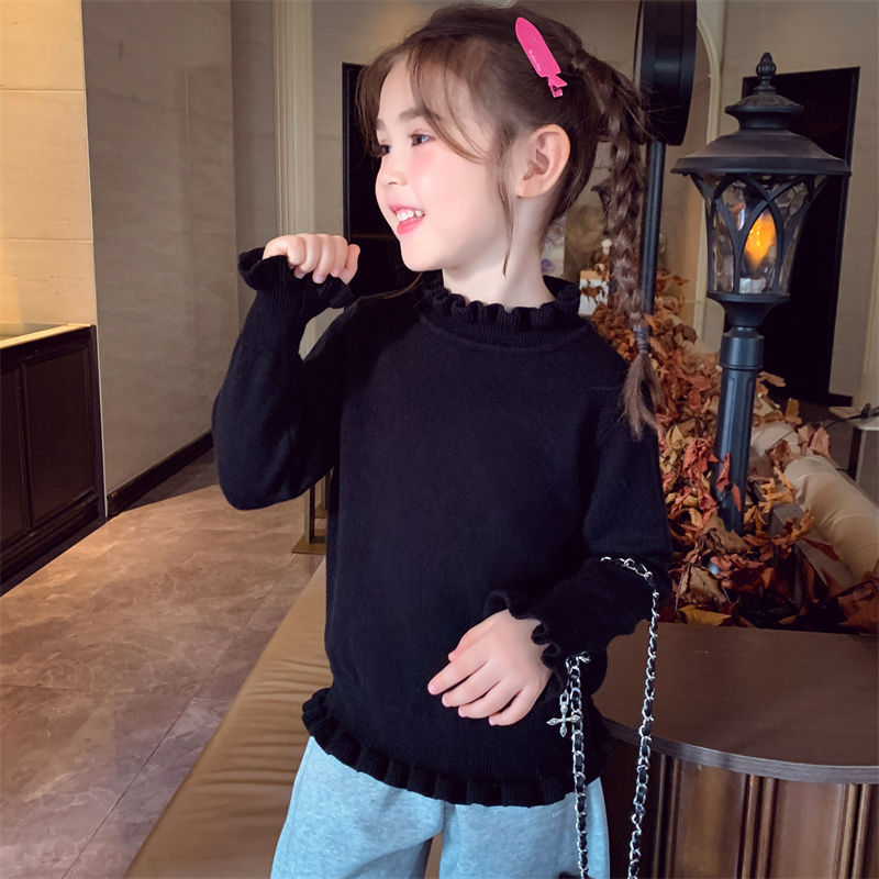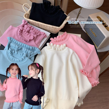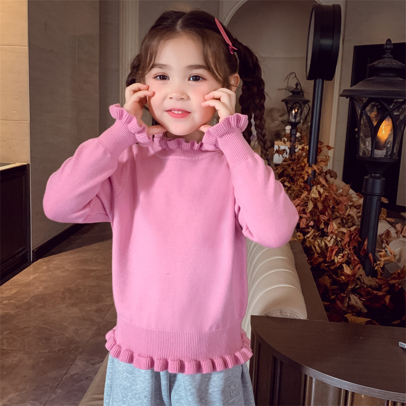 米米哈罗女童针织衫冬装2025新款儿童百搭打底上衣女孩花边领毛衣