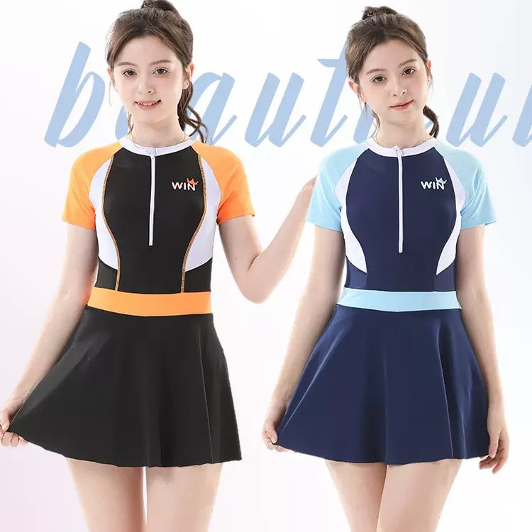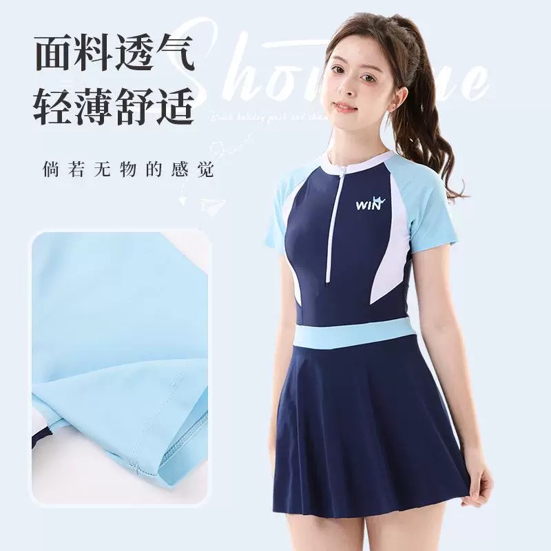 新款保守修身显瘦带胸垫分体泳衣双层防尴尬运动自由温泉游泳衣女