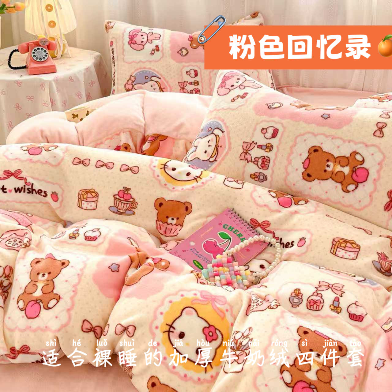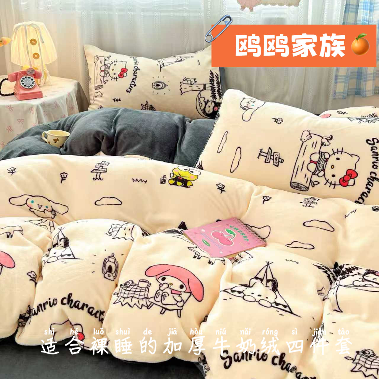 三丽鸥可爱系牛奶绒四件套珊瑚绒儿童保暖卡通加绒被套床单三件套