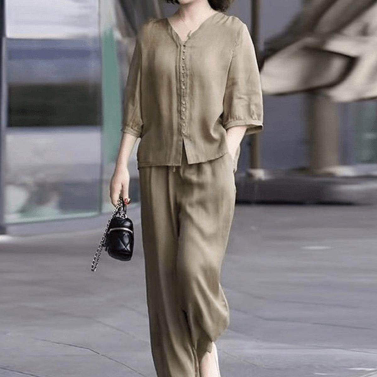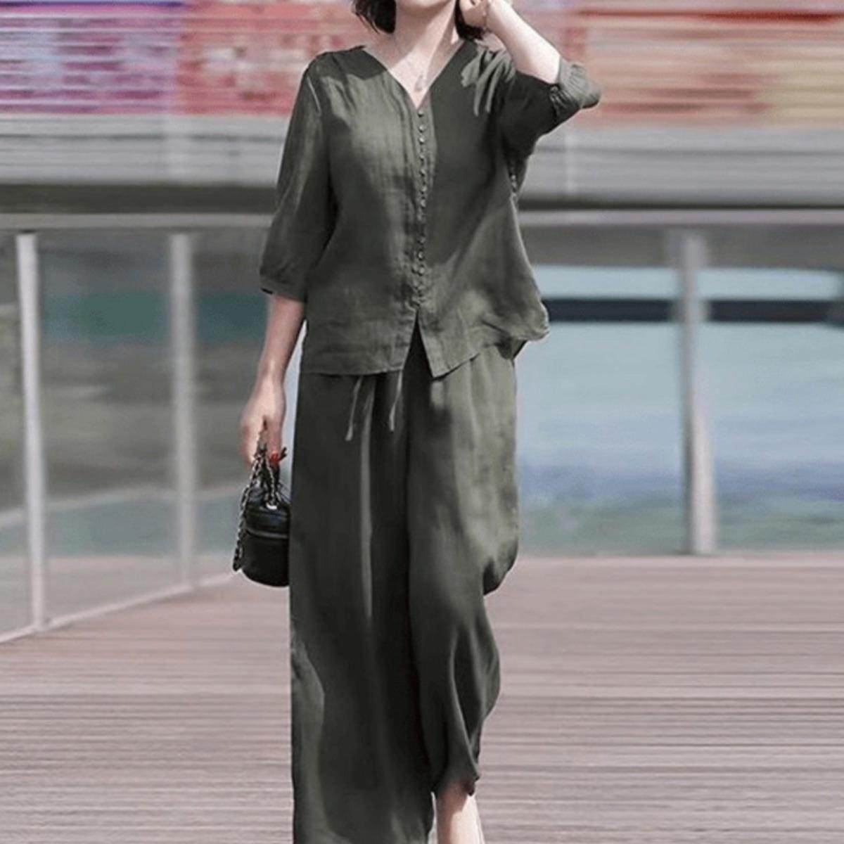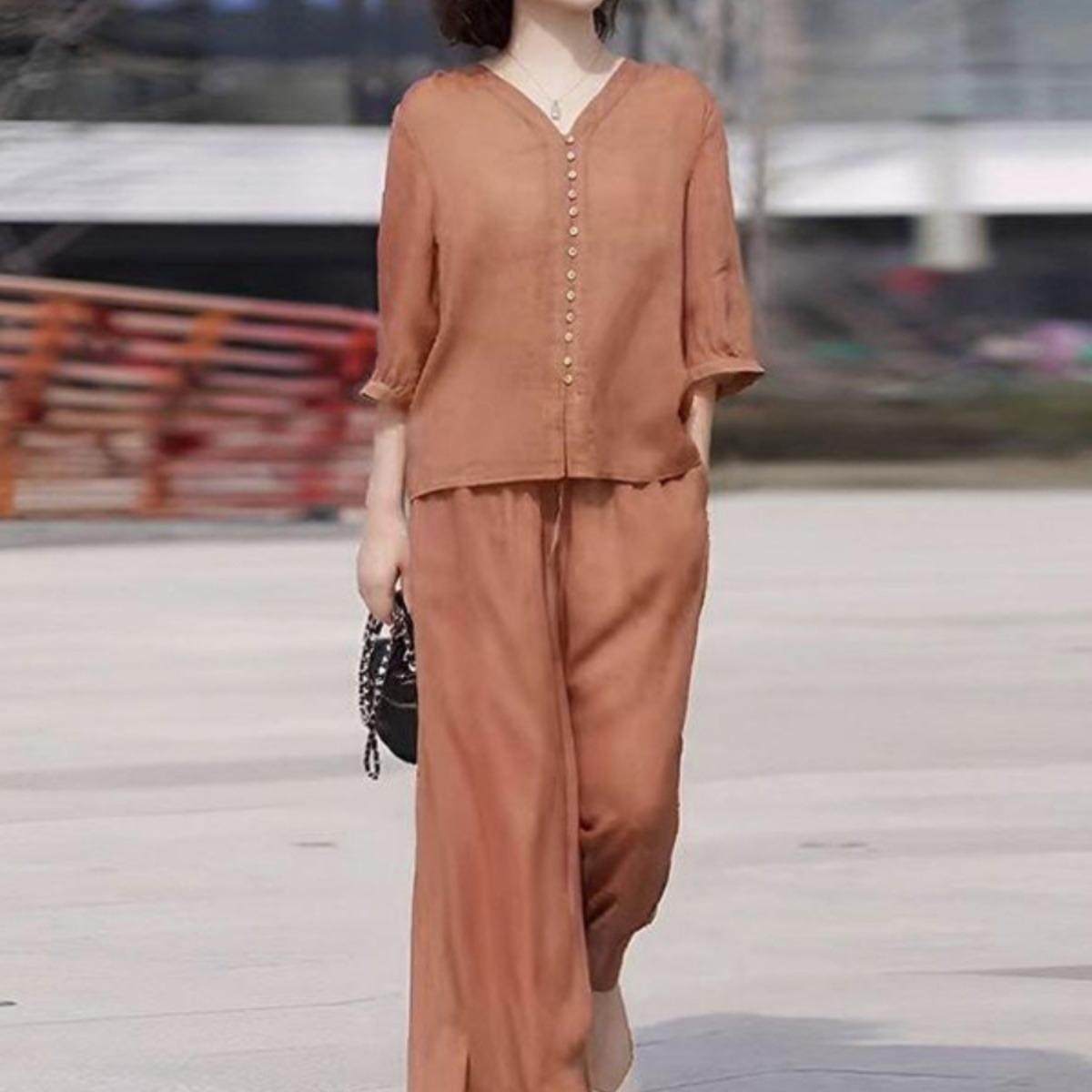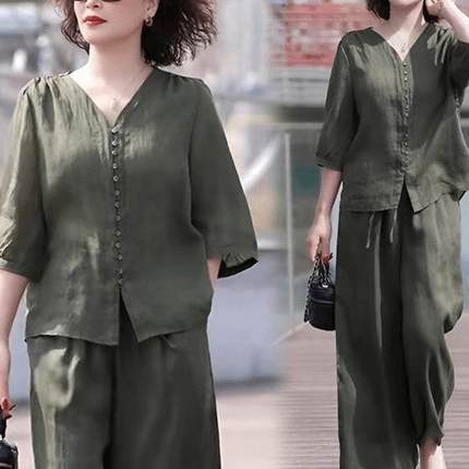 妈妈夏装2025新款套装棉麻亚麻女高端洋气时尚民族风阔腿裤两件套