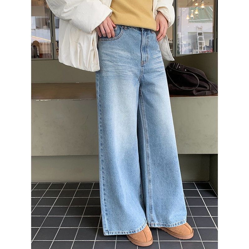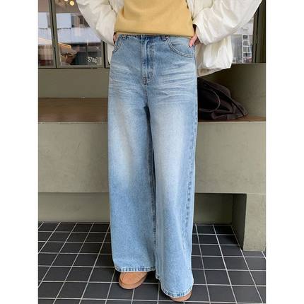 THE MIND直筒显瘦牛仔裤女2025秋冬新款韩版简约高腰百搭长裤N01