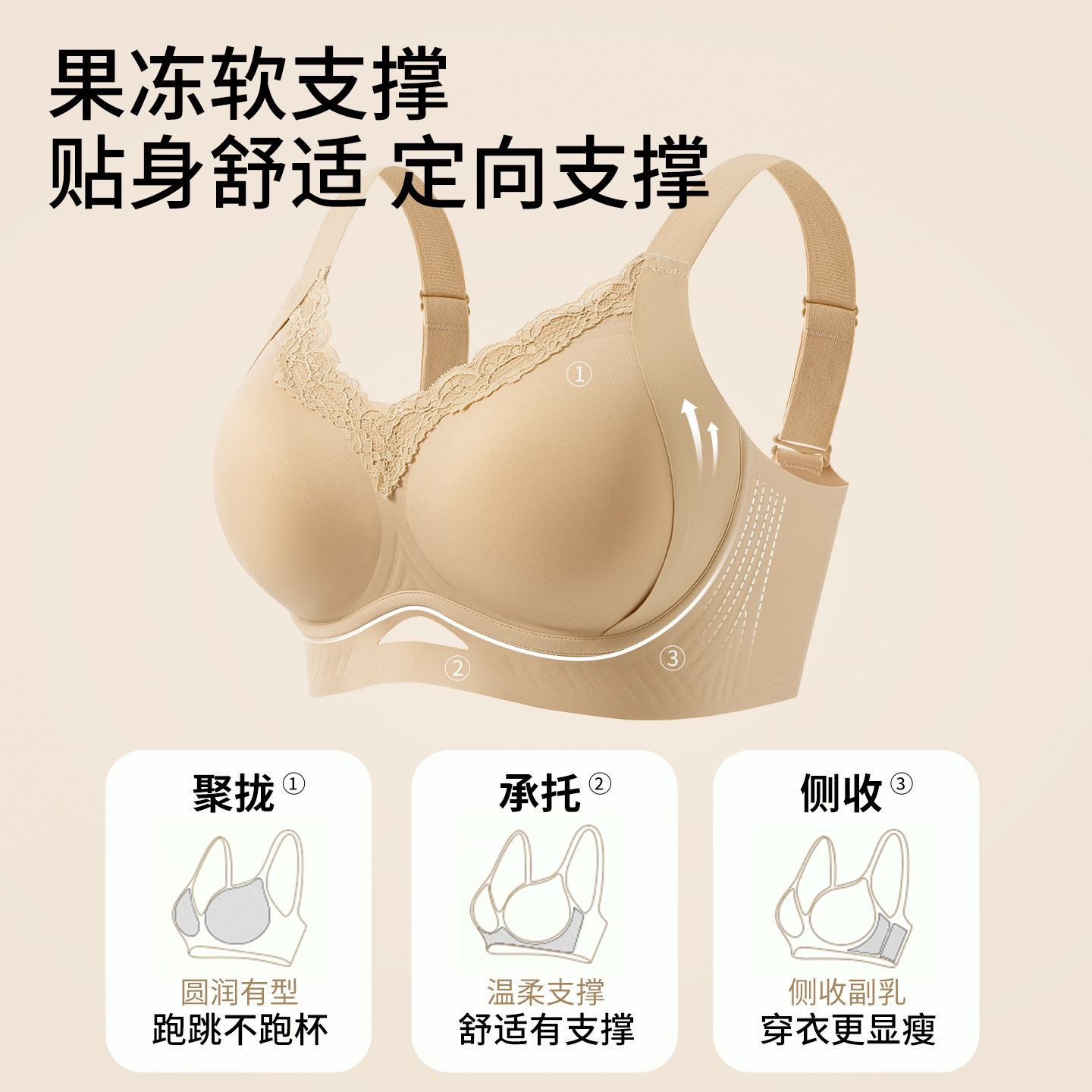 婷美秋冬大胸塑形粉底液内衣果冻条软支撑收副乳提拉隐形无痕文胸