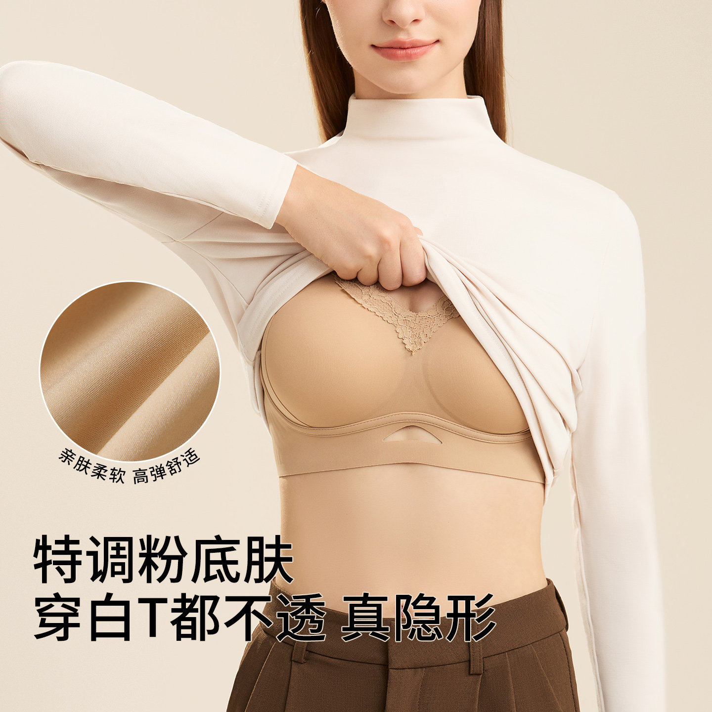 婷美秋冬大胸显小粉底液无痕内衣
