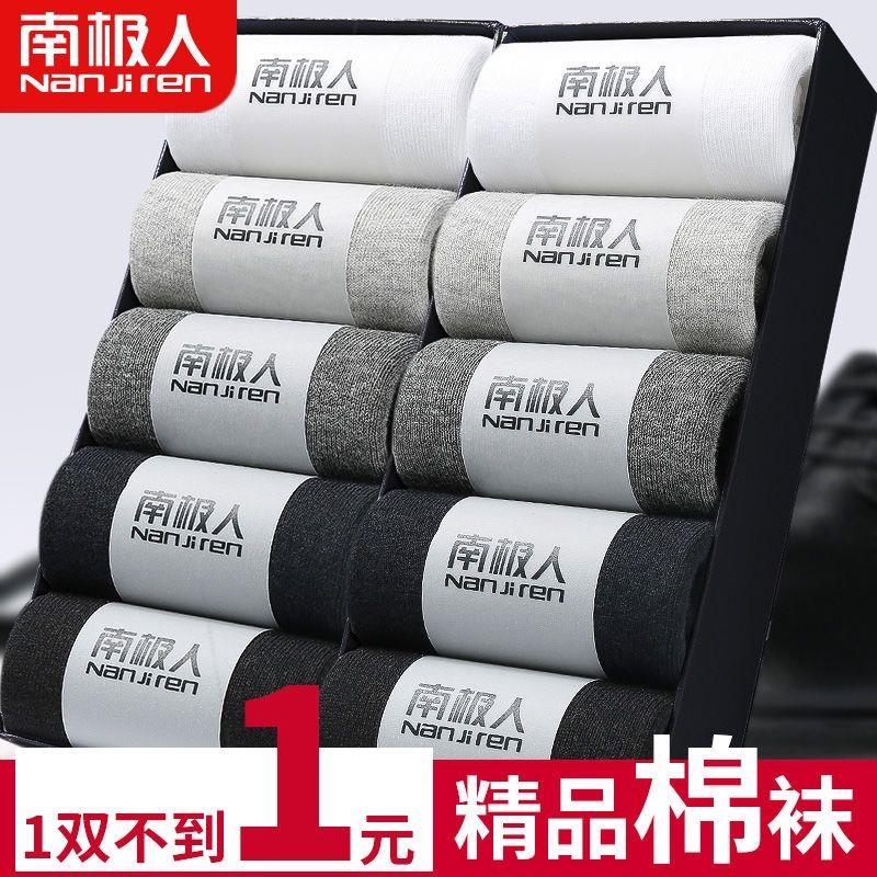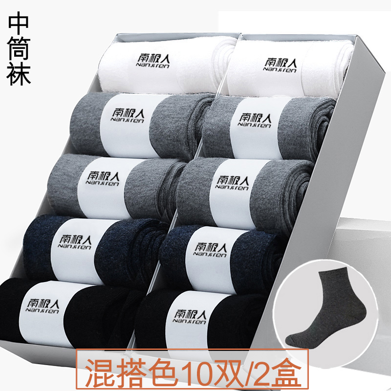 南极人10双装袜子男中筒袜秋冬季纯棉吸汗防臭透气运动长筒袜船袜