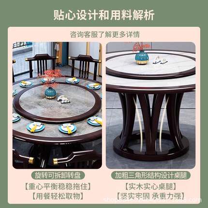 实木岩板餐桌椅组合新中式轻奢酒店大圆桌圆餐桌家用圆形吃饭桌子