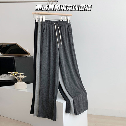 软糯肌理感阔腿裤女小矮个子显高夏装搭配垂感休闲小码直筒凉凉裤