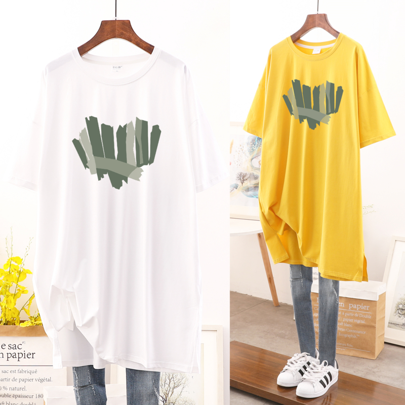 长款短袖t恤女夏季新款胖mm200斤宽松欧货大码下衣失踪半袖连衣裙