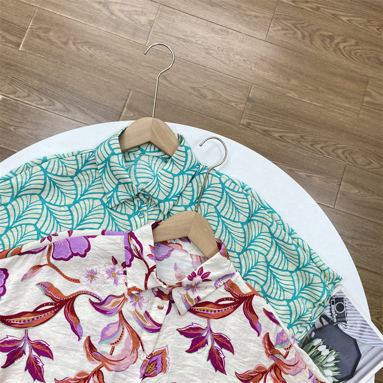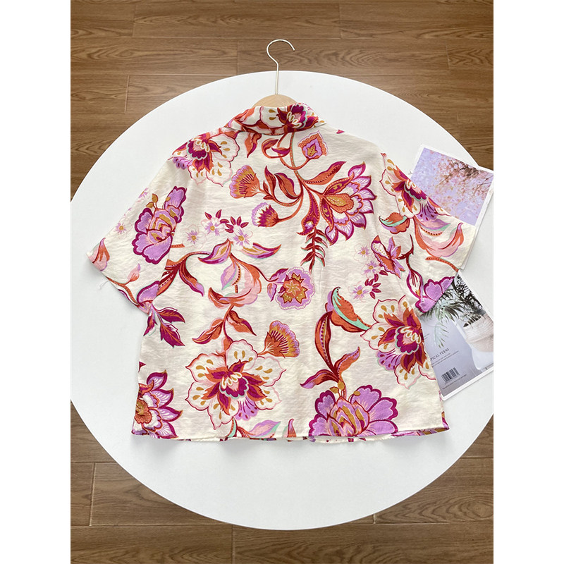 C4印花翻领衬衫外单纯元25夏新款轻薄透气宽松柔软短袖女人棉上衣