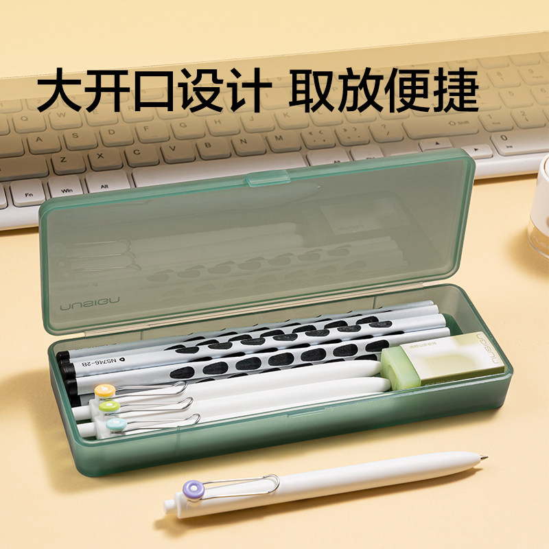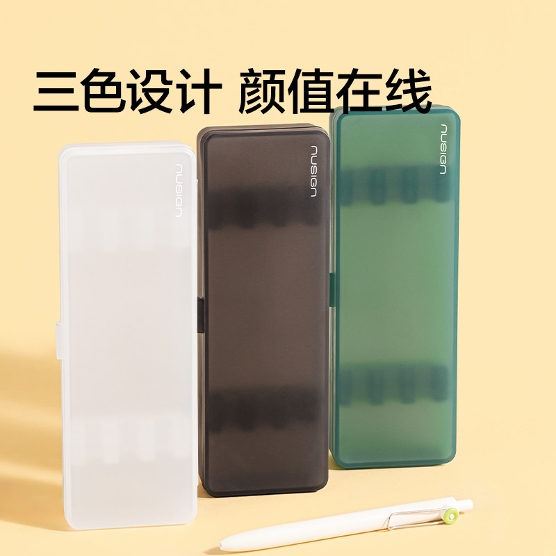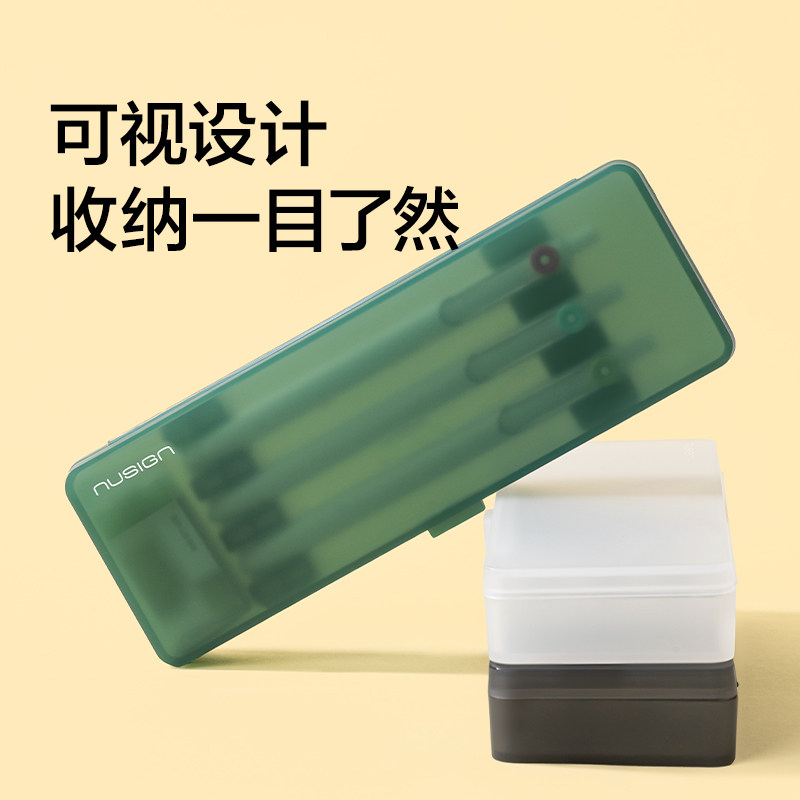 Nusign纽赛文具收纳盒透明笔盒大容量高颜值简约学习考试专用学生小学铅笔盒文具盒中性笔收纳整理盒
