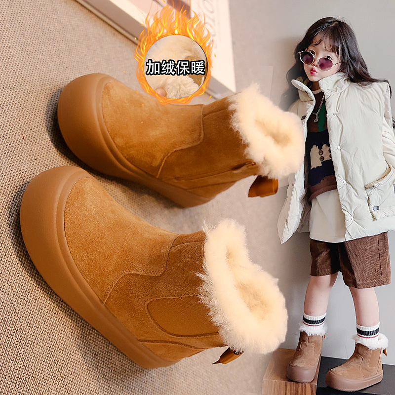 儿童雪地靴加绒加厚棉鞋女童靴子2025新款冬鞋雪地棉童鞋男童软底