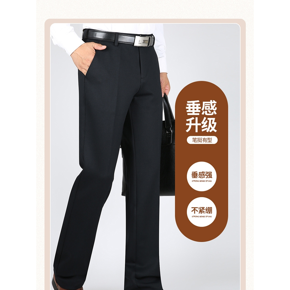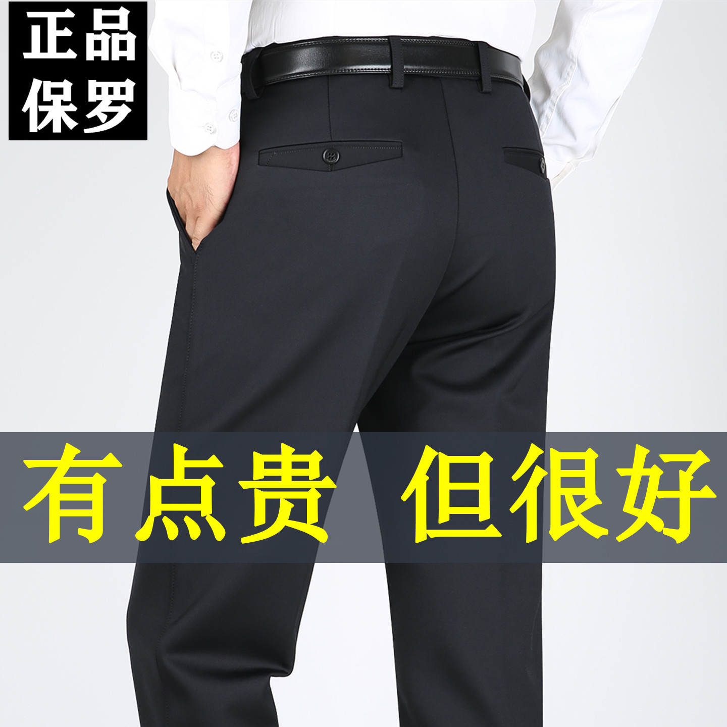 保罗男士休闲裤厚款直筒宽松秋冬季西裤商务免烫中老年爸爸长裤子
