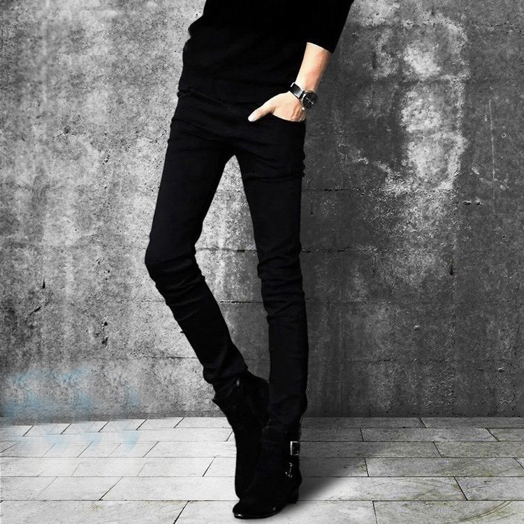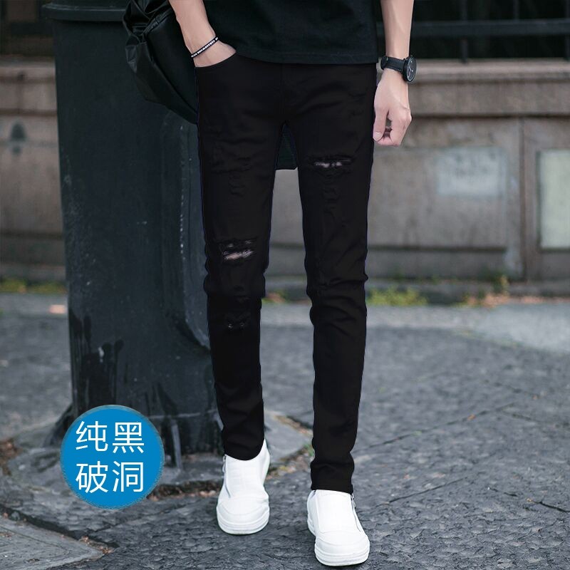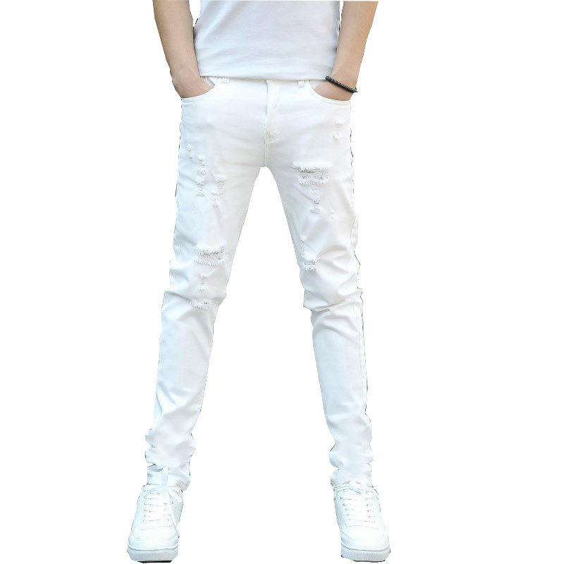 浅色白裤子弹力休闲冬季牛仔裤男加绒白色破洞潮流修身小脚长裤子