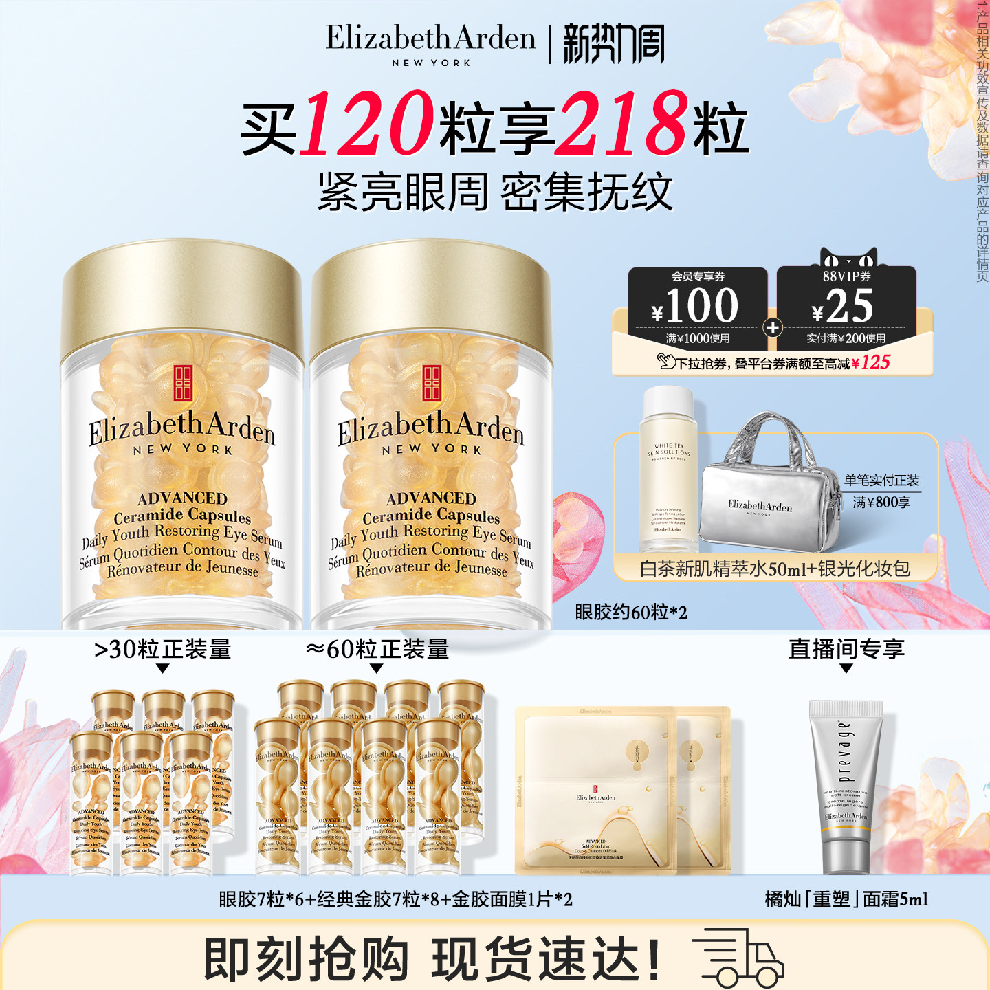 雅顿眼胶眼精华油淡纹抗皱 紧致神经酰胺保湿次抛胶囊 眼霜