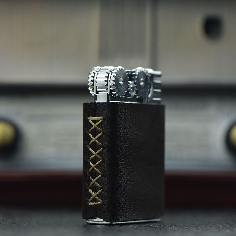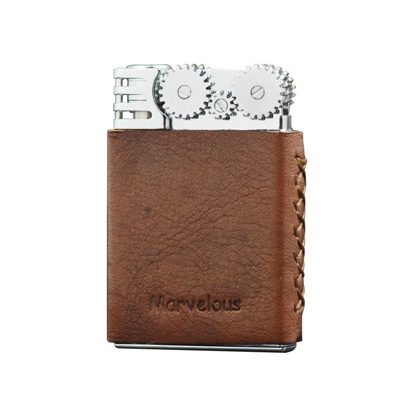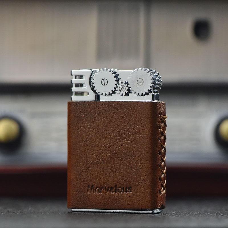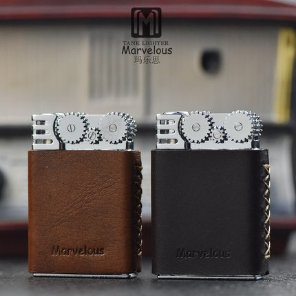日本进口玛乐思煤油砂轮打火机头层真皮复古老式个性送礼烟具男士