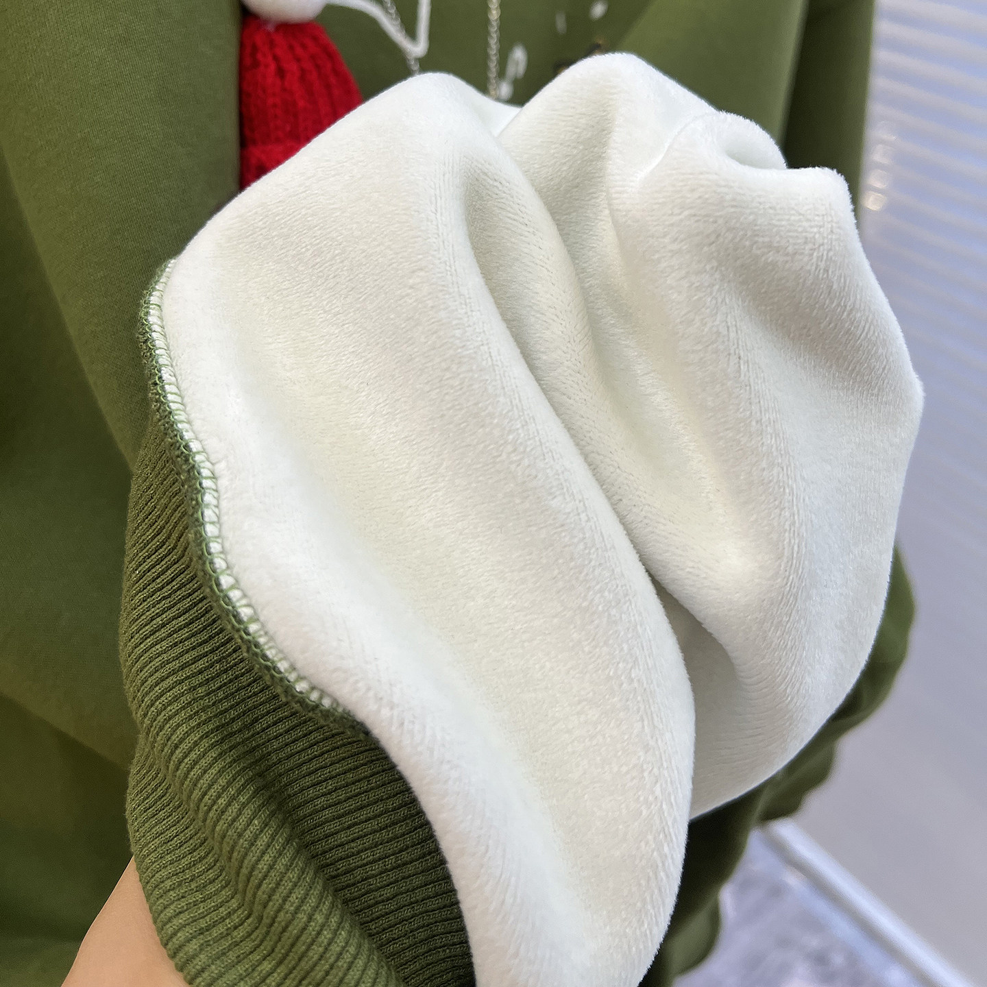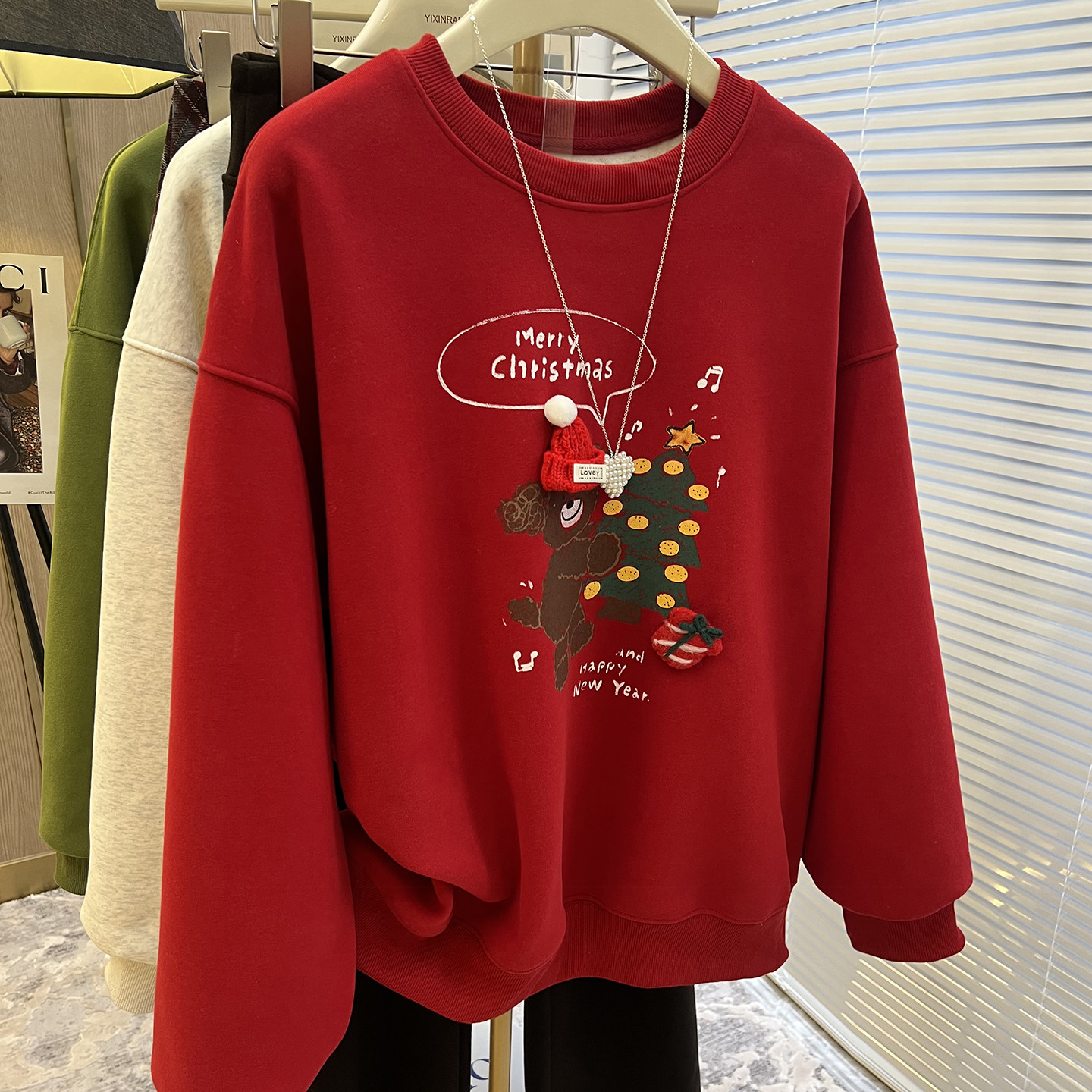 绿色爆款加绒卫衣女款加厚2026新款冬季卡通保暖内搭圆领套头衫