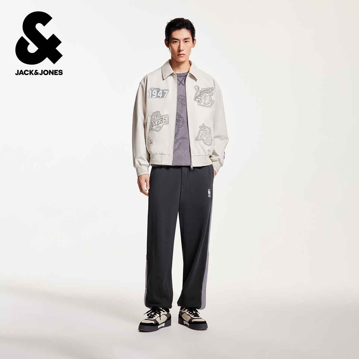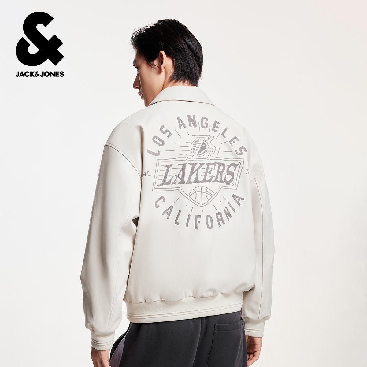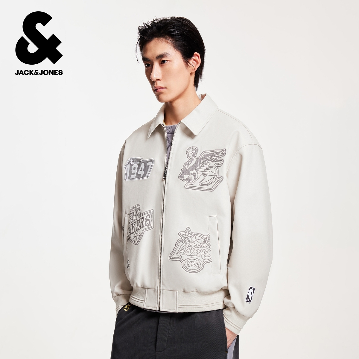 k区绫致杰克琼斯男秋冬NBA联名湖人队刺绣贴布潮流翻领夹克外套