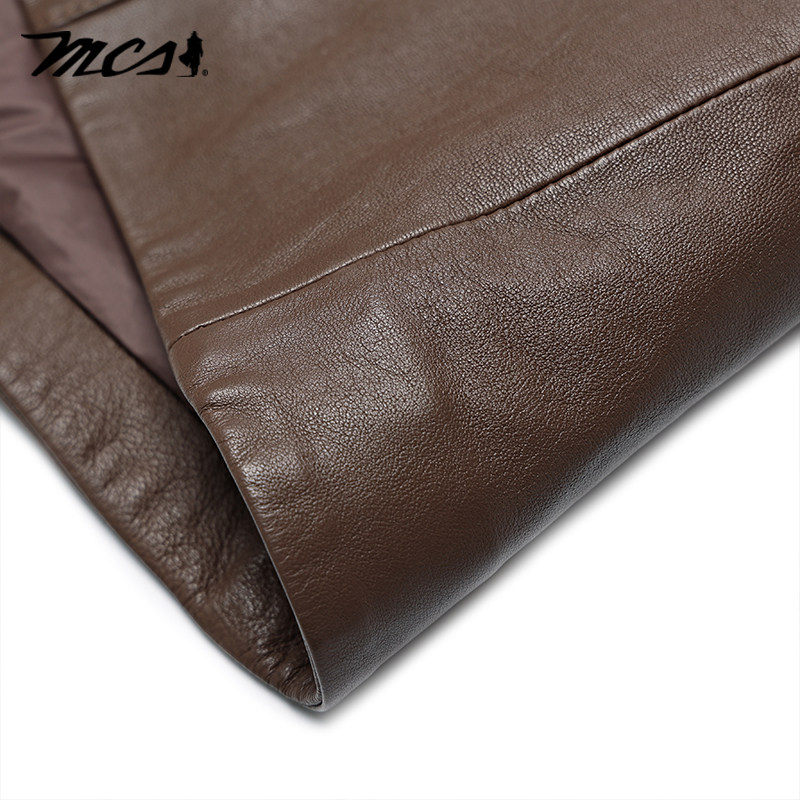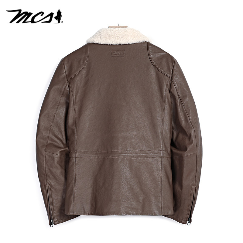 MCS女装秋冬绵羊皮真皮皮衣外套美式休闲可脱毛翻领羽绒皮夹克女