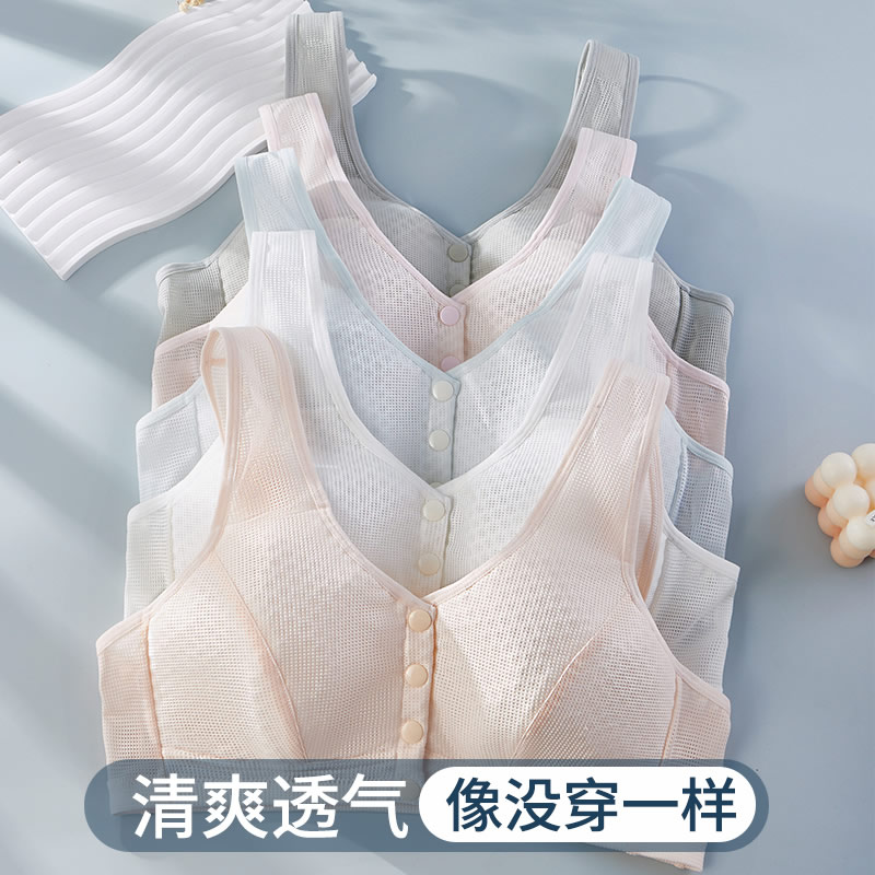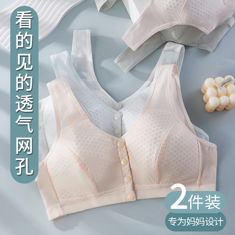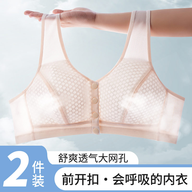 中老年文胸2025新款爆款女士妈妈内衣前扣式大胸显小全棉轻薄美背