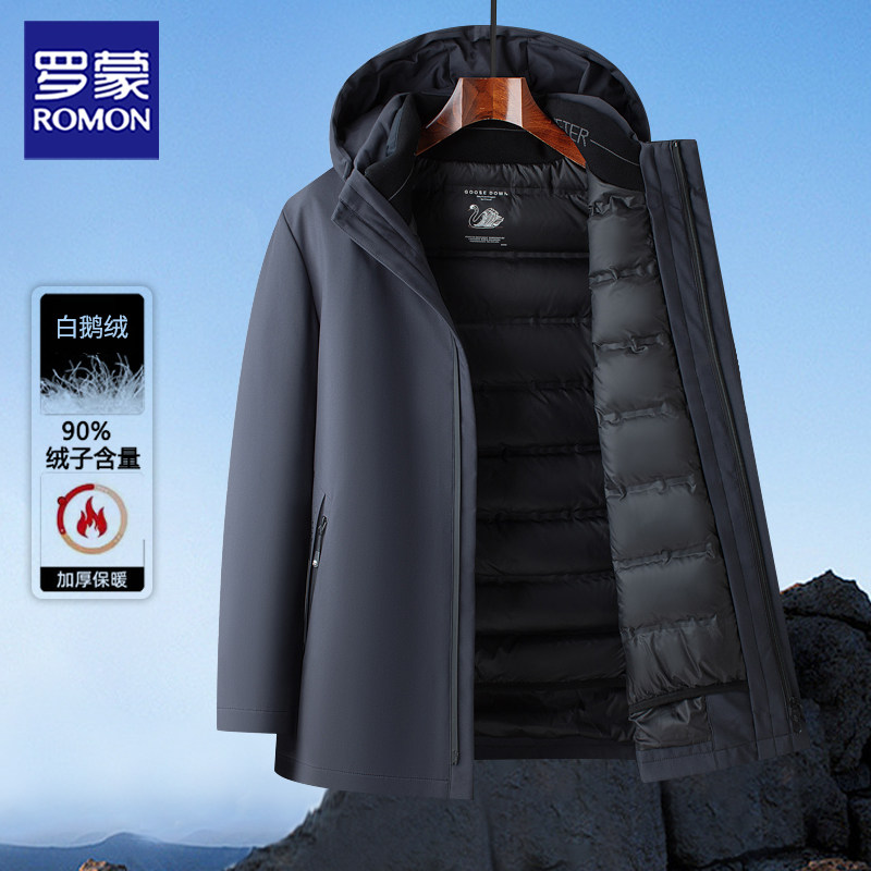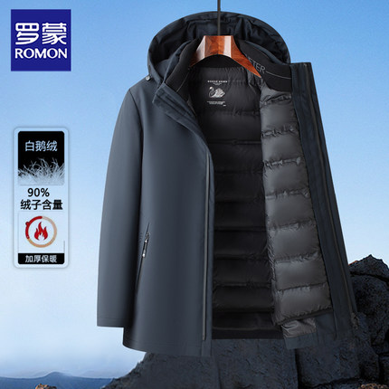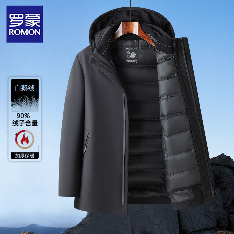 罗蒙90白鹅绒男士羽绒服男款冬季休闲加厚新款可拆卸内胆冬装外套