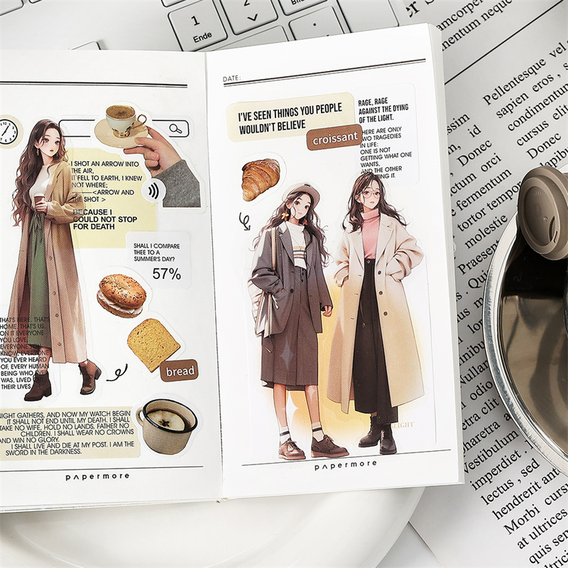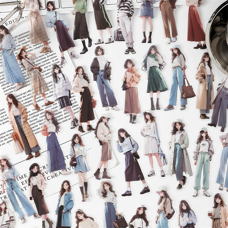M|少女期刊贴纸 人物穿搭卡通ins精致甜美可爱pet手账咕卡贴画