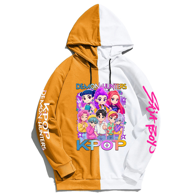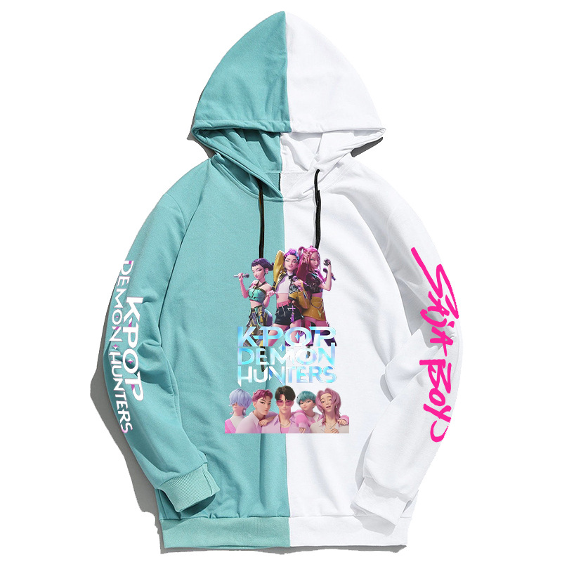 猎魔女团KPop Demon Hunters周边拼色帽衫秋冬潮流加绒卫衣
